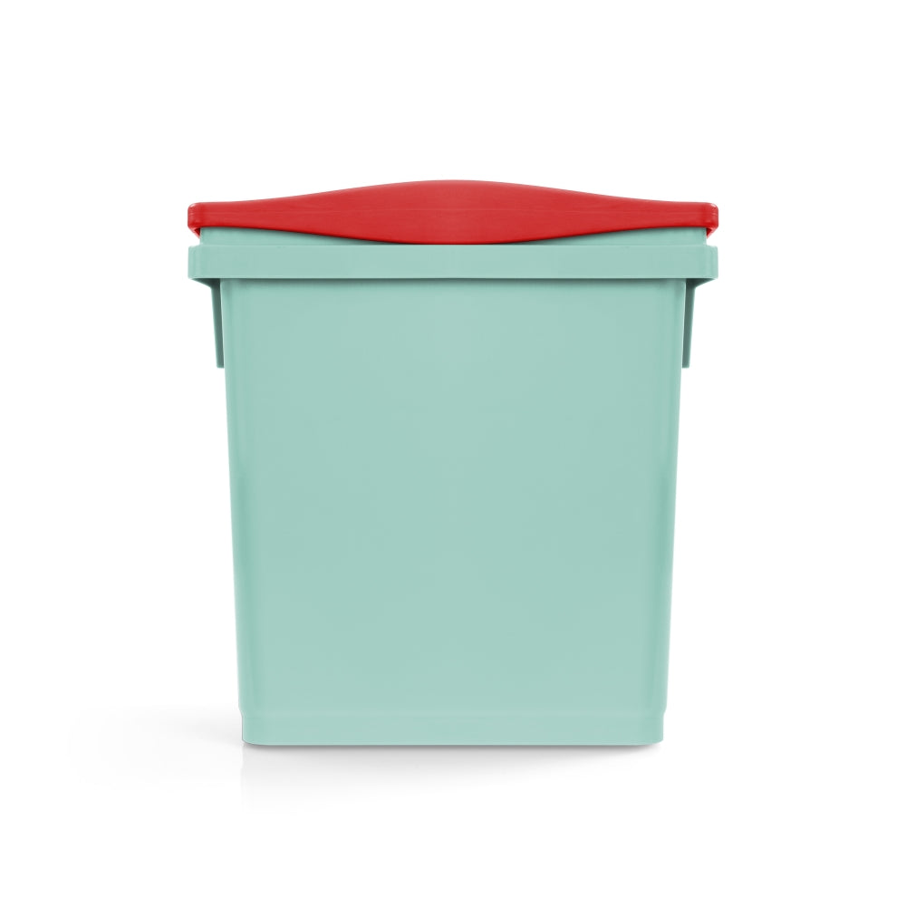 Balde retangular em polipropileno antibacteriano, com alça codificada por cores na borda superior.