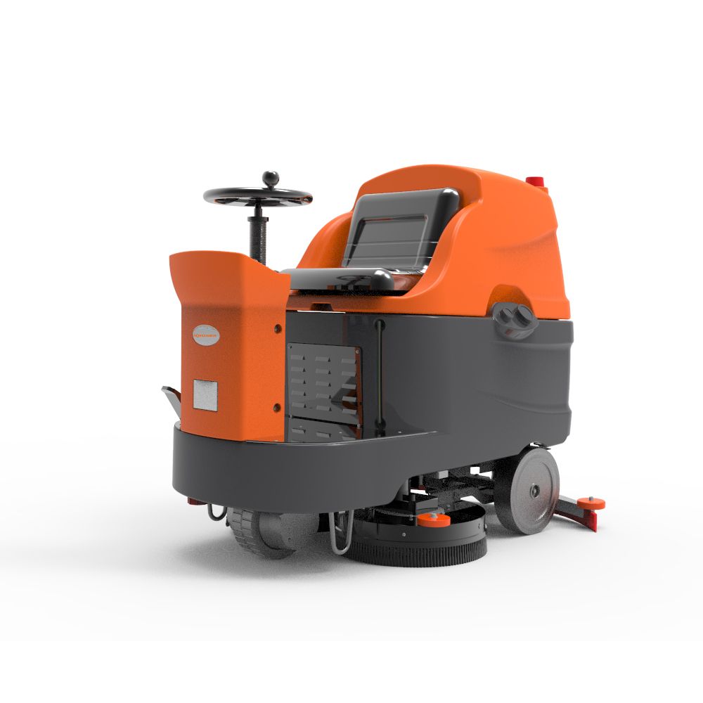 Varredora industrial de condutor sentado, robusta e ergonómica, ideal para grandes áreas em indústria, logística e centros comerciais.