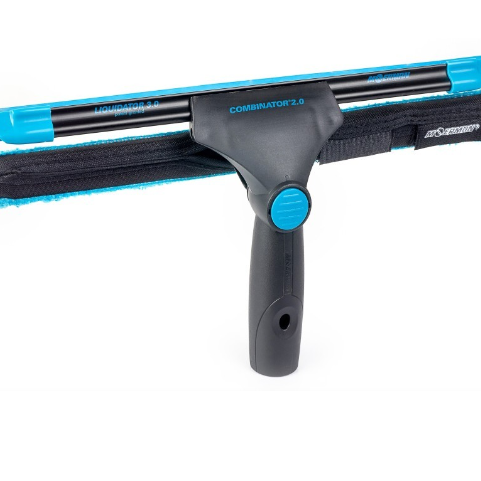 O limpa vidros Moerman Combinator é uma ferramenta profissional 2 em 1, que combina aplicador e rodo num único sistema eficiente e ergonómico.