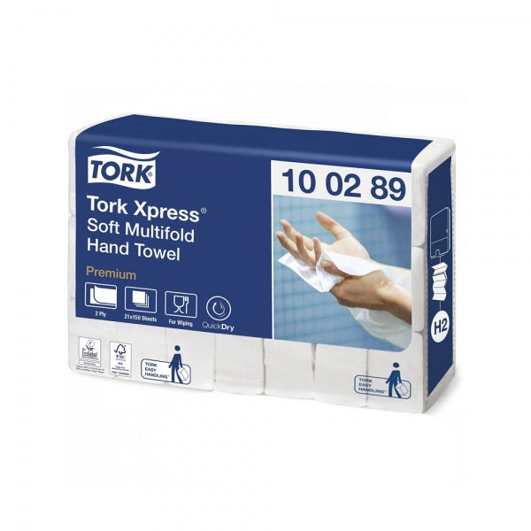 Toalha de Mão Interfolha Suave Premium de grande dimensão e específica, delicada para a pele e que proporciona uma sensação de qualidade superior. Estas toalhas são indicadas para utilização com o Tork Xpress® Dispensador para Toalha de Mão Inter folha, em casas de banho com tráfego médio. Adequam-se a pequenos espaços e prometem grande conforto e higiene.